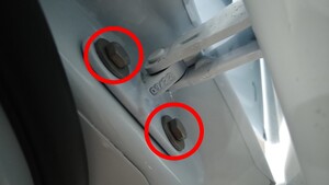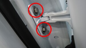 Bolts (x4) that attach the LH rear door to the vehicle |