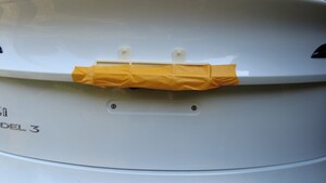 - Remove the protective film from the badge, and then remove the alignment tool from the trunk lid.