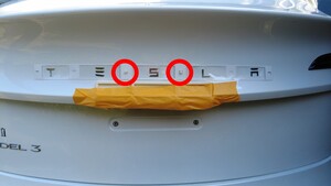 trunk badge, align the holes on the badge protective film to the locating pins of the