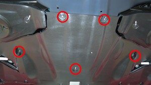 Bolts (x5) that attach the rear portion of the mid aero shield to the vehicle |