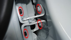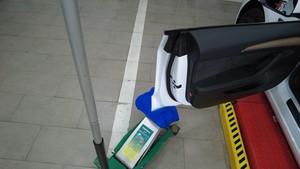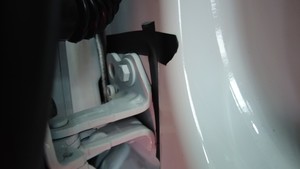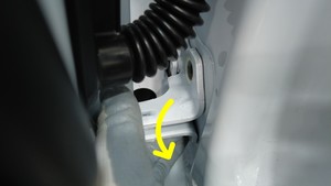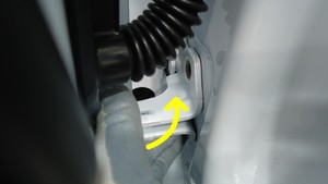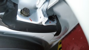 - Remove the masking tape that surrounds the LH front door lower hinge on the body and door.