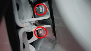 Bolts (x2) that attach the LH front lower door hinge to the door |