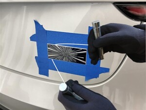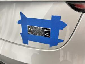 - Remove the adhesive backing from the badge, and then remove the masking tape from the trunk lid.