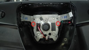 Screws (x2) that attach the lower spoke cover to the front of the steering wheel |