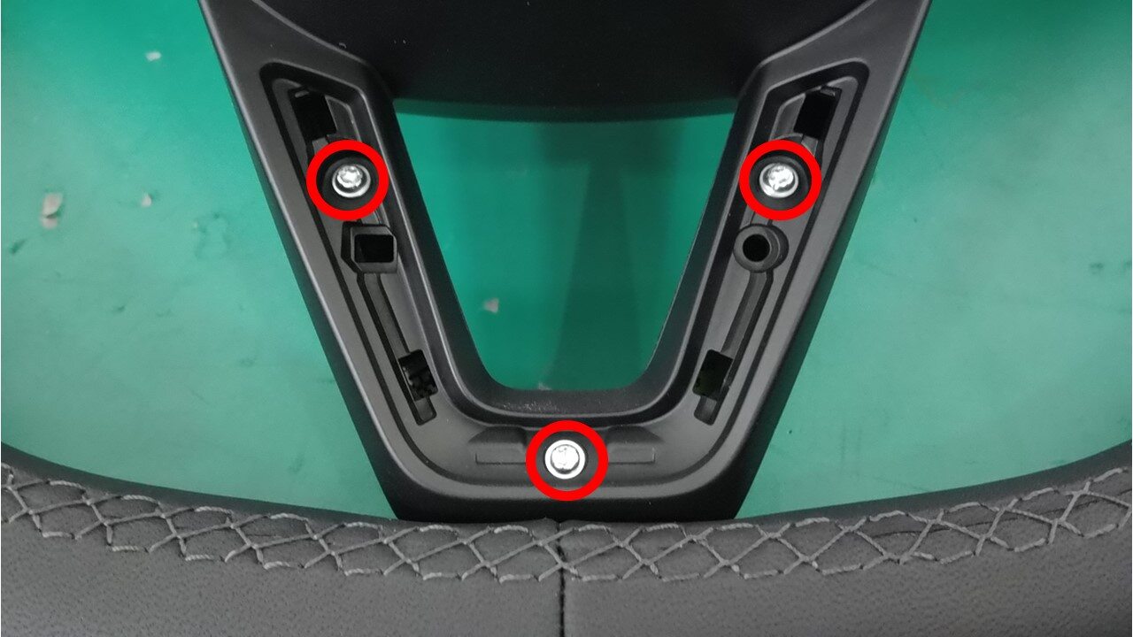 Screws (x3) that attach the lower spoke cover to the bottom of the steering wheel |