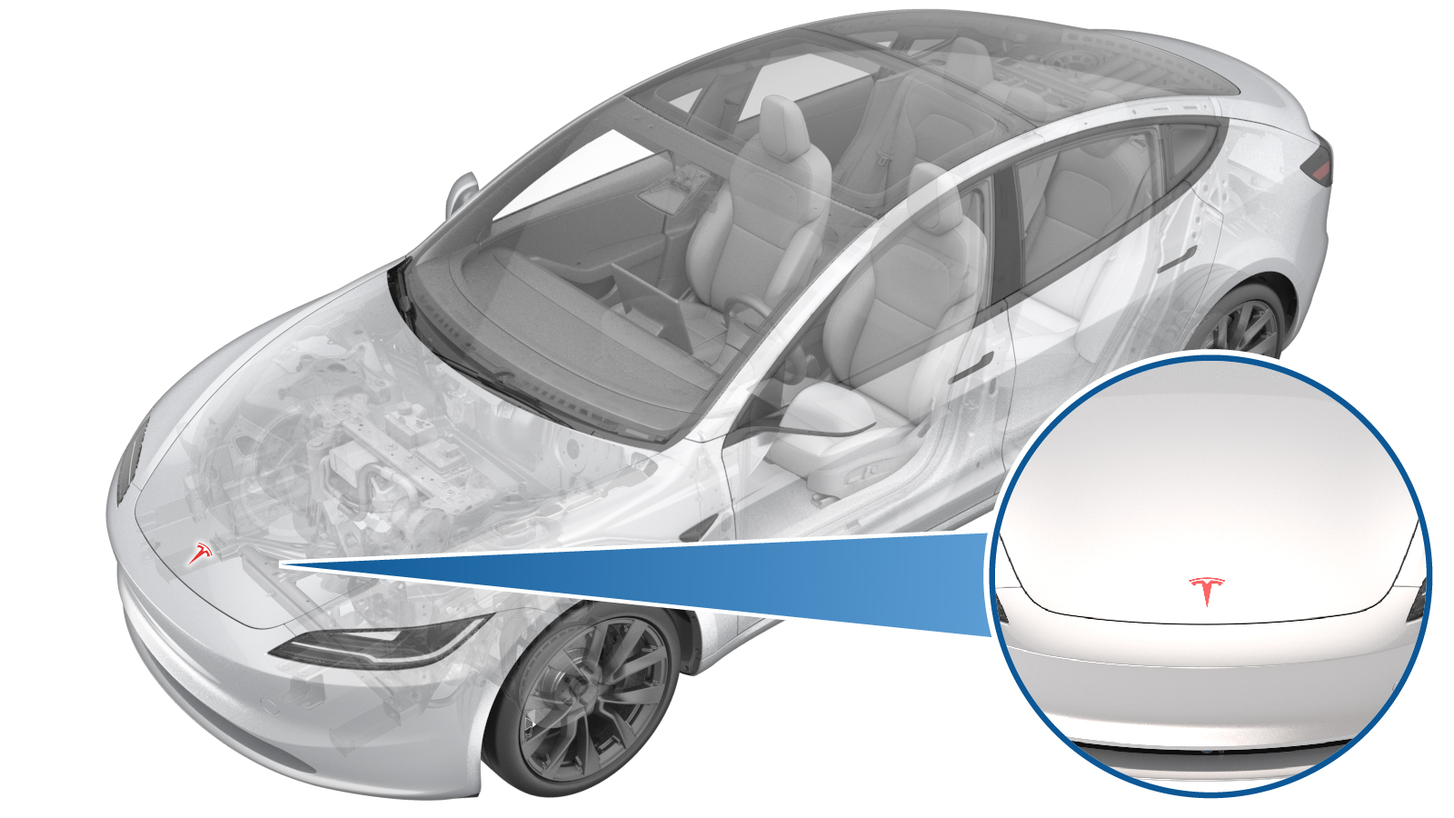 - With the hood closed, position the badge removal tool so that the monofilament line cuts under a corner of the front Tesla badge.