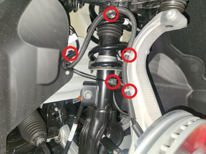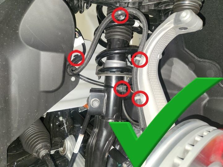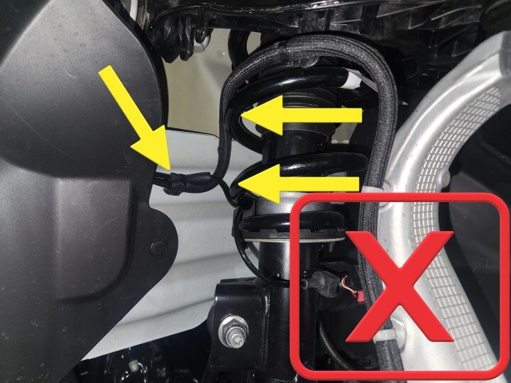 Note4x tree clips, 1x rubber grommet, Ensure harness is routed correctly to avoid harness contact with moving suspension components