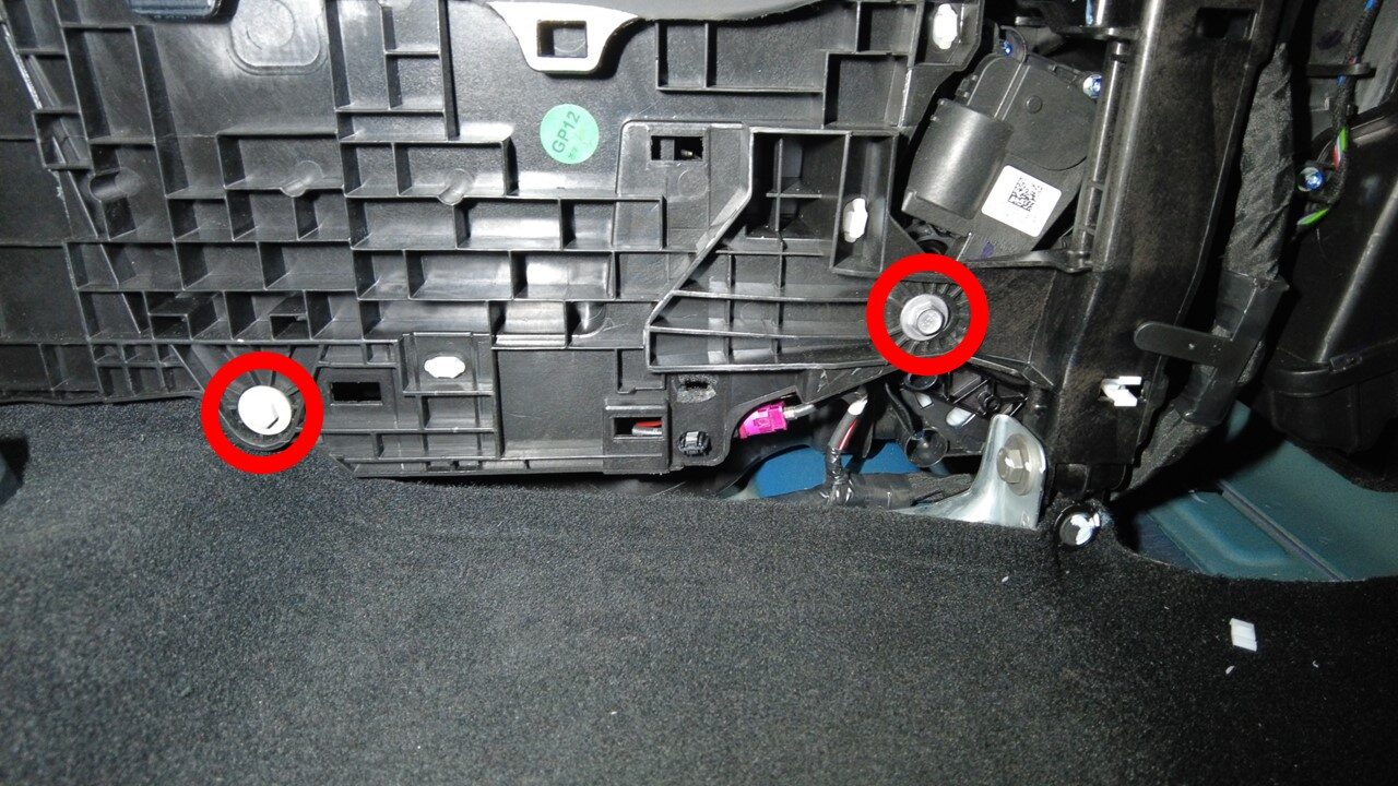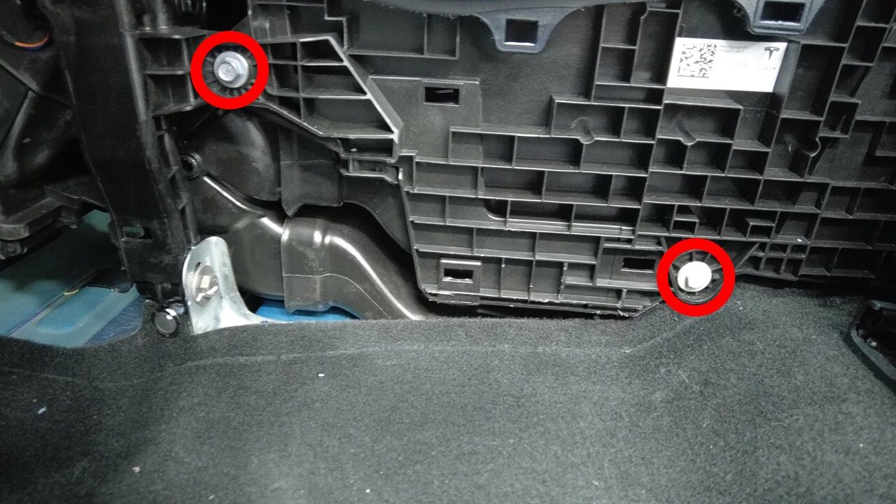 NoteChange: 2x bolts, 10mm, 7 Nm, The passenger seat cannot be fully adjusted out of the way from the RH rear 10mm bolt, Removing the RH side bolt requires a 10mm combination flex wrench