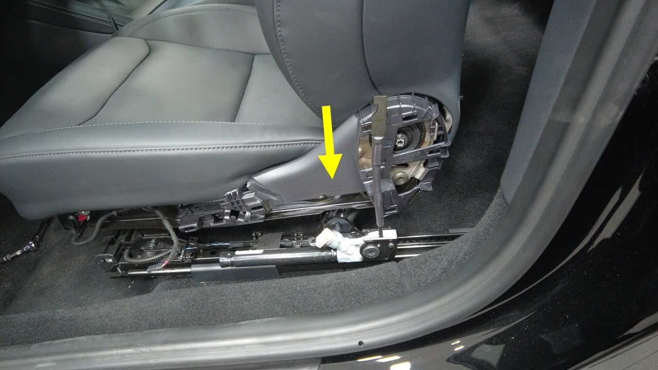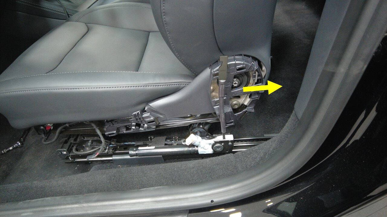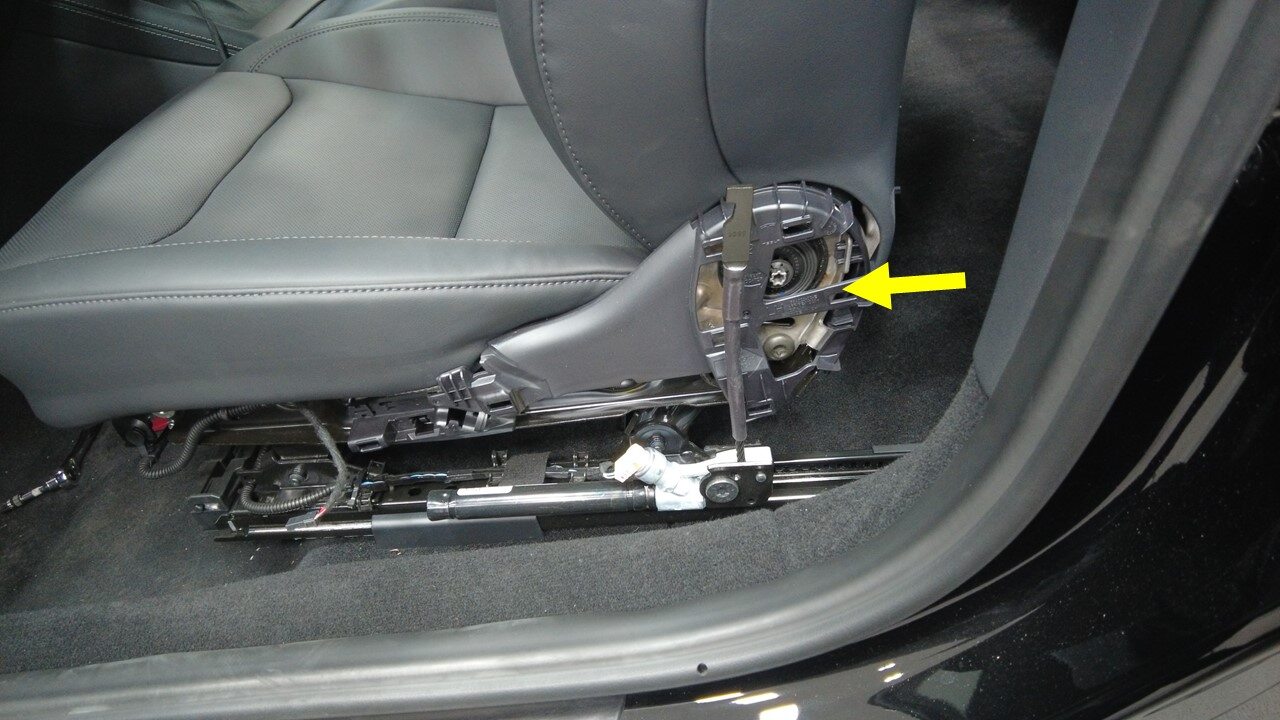 - Remove the LH outboard sideshield assembly from the LH front seat. See Sideshield - Outboard - 1st Row Seat - LH (Model 3 Standard) (Remove and Replace).