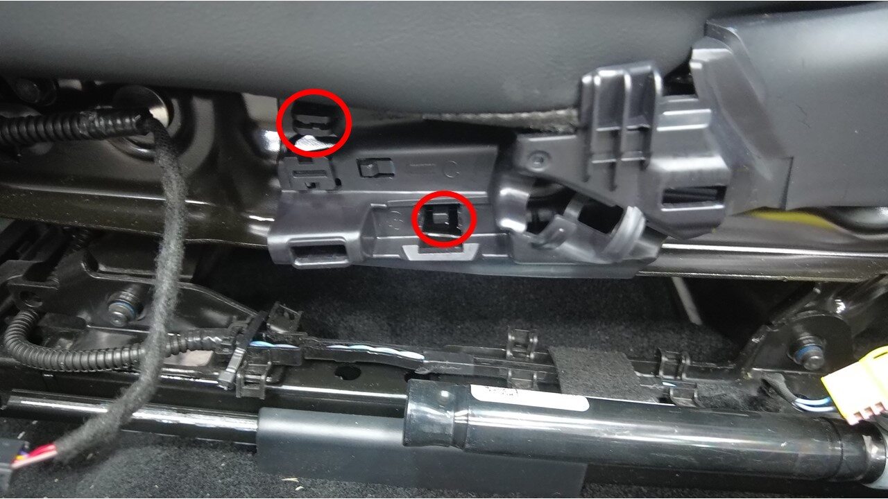 NotePush the carrier forward to secure the positioning clips (x2) to the front left seat.