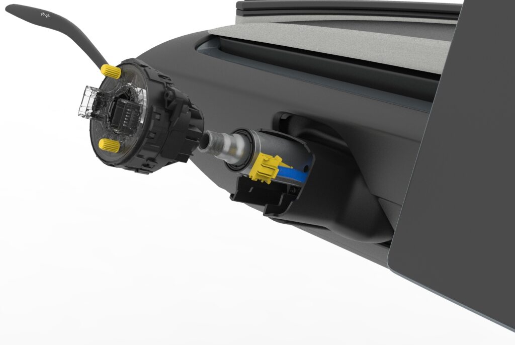 NoteInstall a new retaining clip to the connector, then install the steering column control module connector. Perform a push-pull-push text to make sure the connector is seated properly.NoteOriginal retaining clips are black. All replacement clips are orange.