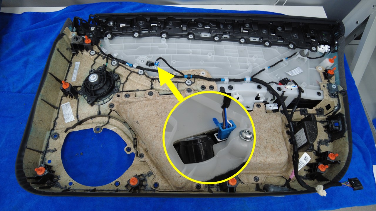 NoteThe door harness from the old door trim transferred into the new trim if it is in good condition.