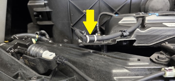 NoteThe hose may not be present on early production vehicles. If not, skip this step.NotePerform a pull-push-pull test to verify the washer hose is properly engaged.