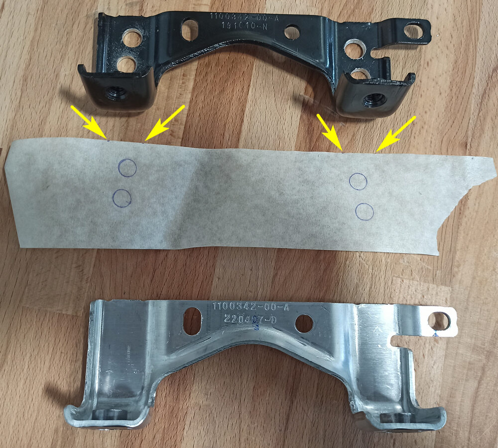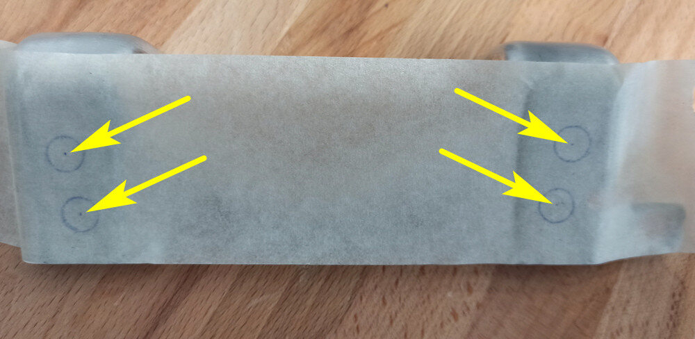 NotaRemove the stencil from the old bracket and apply it to the new one strictly in the same location. Use center punch to create a small dimple in the center of each circle.