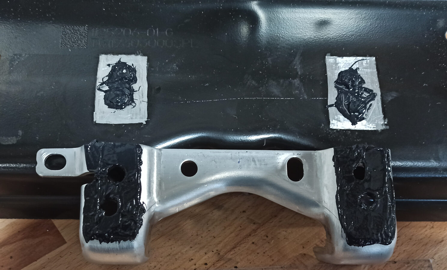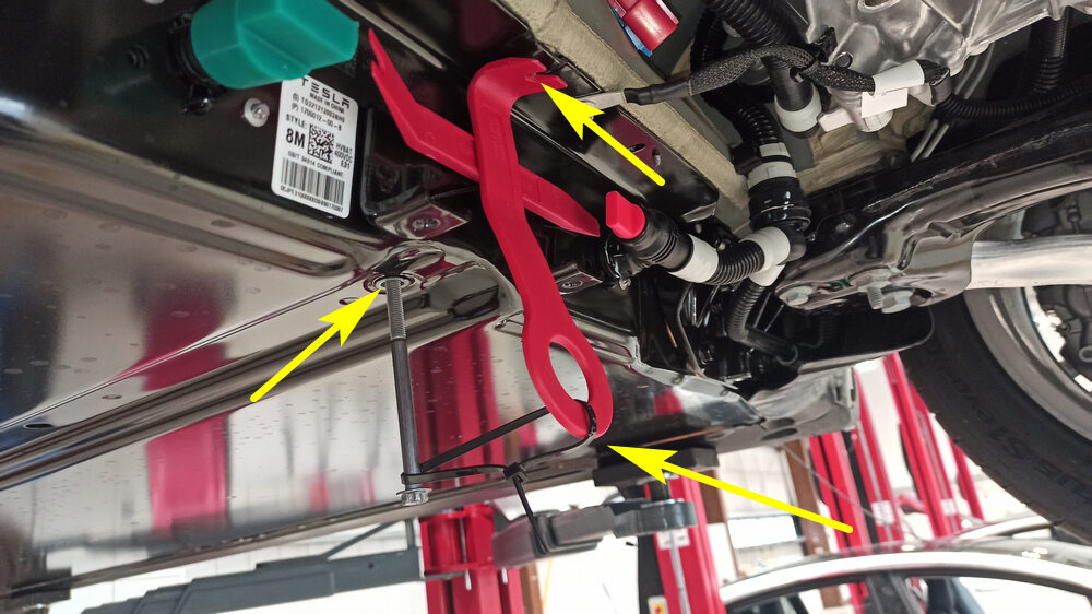 NotaTry the skid plate bracket on the HV battery and check that the flat surfaces fit snugly together.