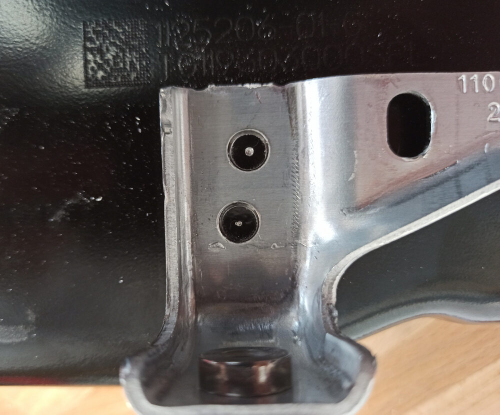 NotaUse 3/8" size spot weld cutter,Use chiseling technique at high speed to allow the chips to fly out as the cut exits the aluminum, or clean the cutter manually after short drilling, Drill to a depth of no more than the thickness of the Skid Plate Bracket approximately 2.5mm.