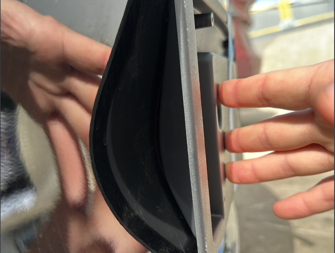 Use the center grille rib as a reference point, then align tape centrally onto center mold injection onto bracket up to T badge.