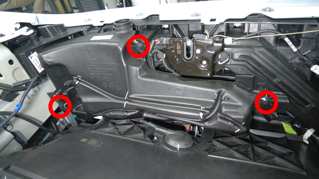 | 将清洗器储液罐固定到前端支架的螺栓(3 个) |
