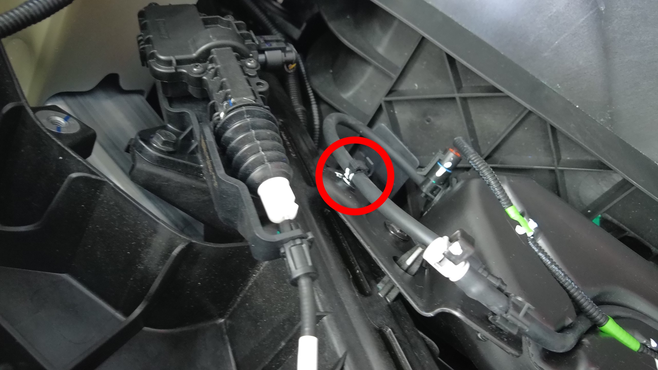 安装将前摄像头软管固定到清洗器储液罐的卡子。