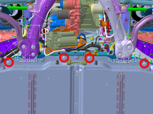 Entfernen Sie die 4. Schraube LH, mit der die HV-Batterie an der Karosserie befestigt ist.