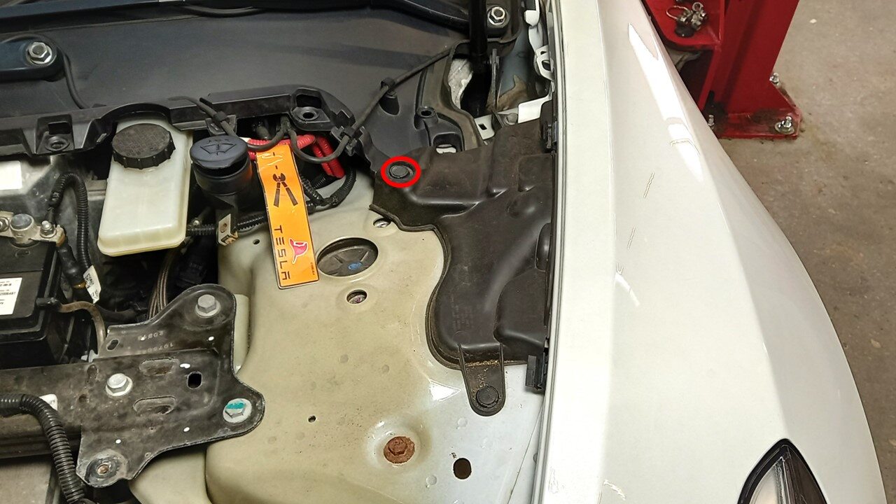 Anmerkung4x clips, 1x connector, Frunk safety switch, 3x guide tabs, Grab closeout panel from bottom then pull it upward to release clips, Disconnect switch