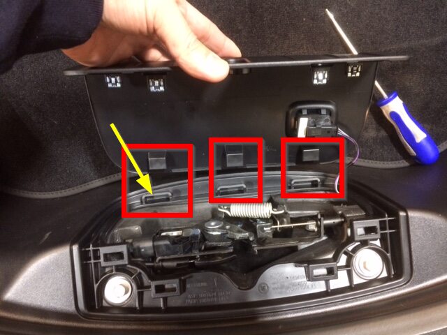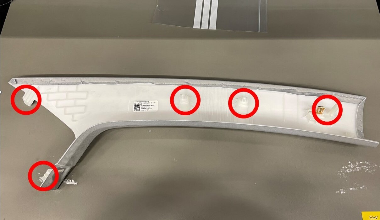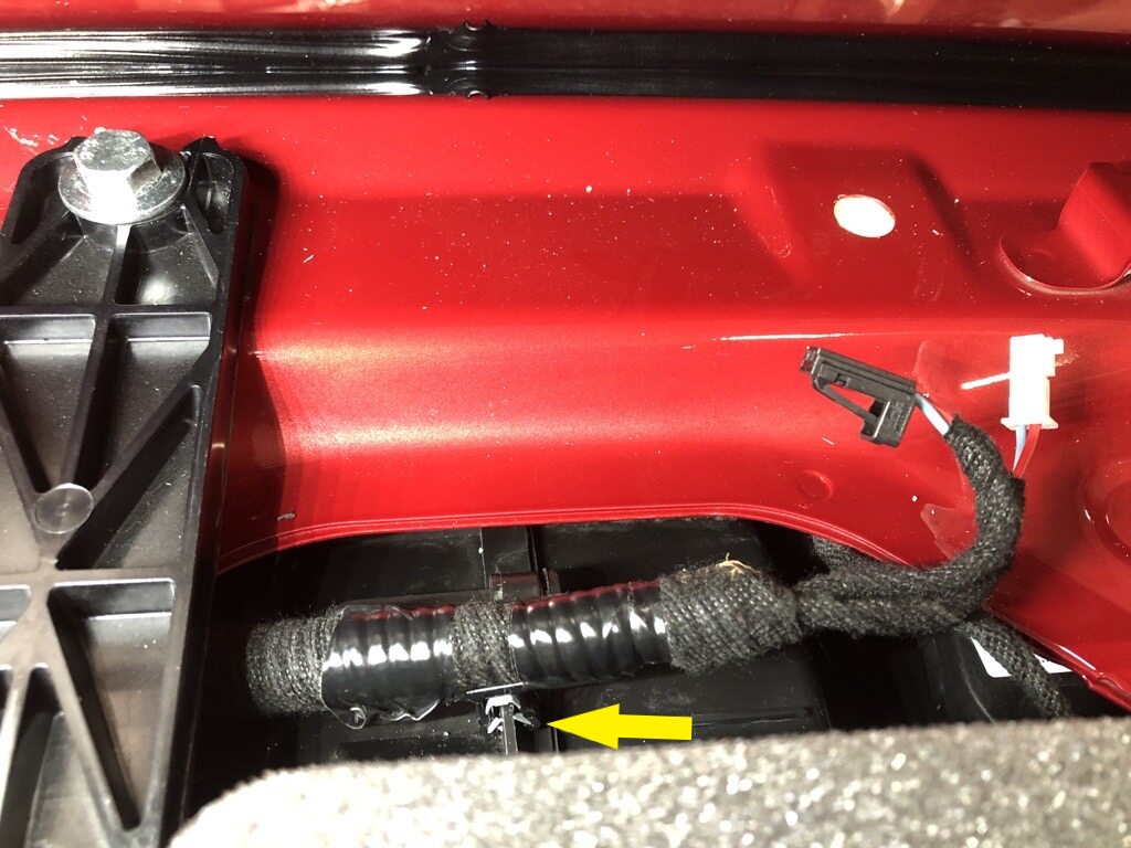 Anmerkung4x clips, 1x connector, Frunk safety switch, 3x guide tabs, Align 3x tabs then push downward to secure clips