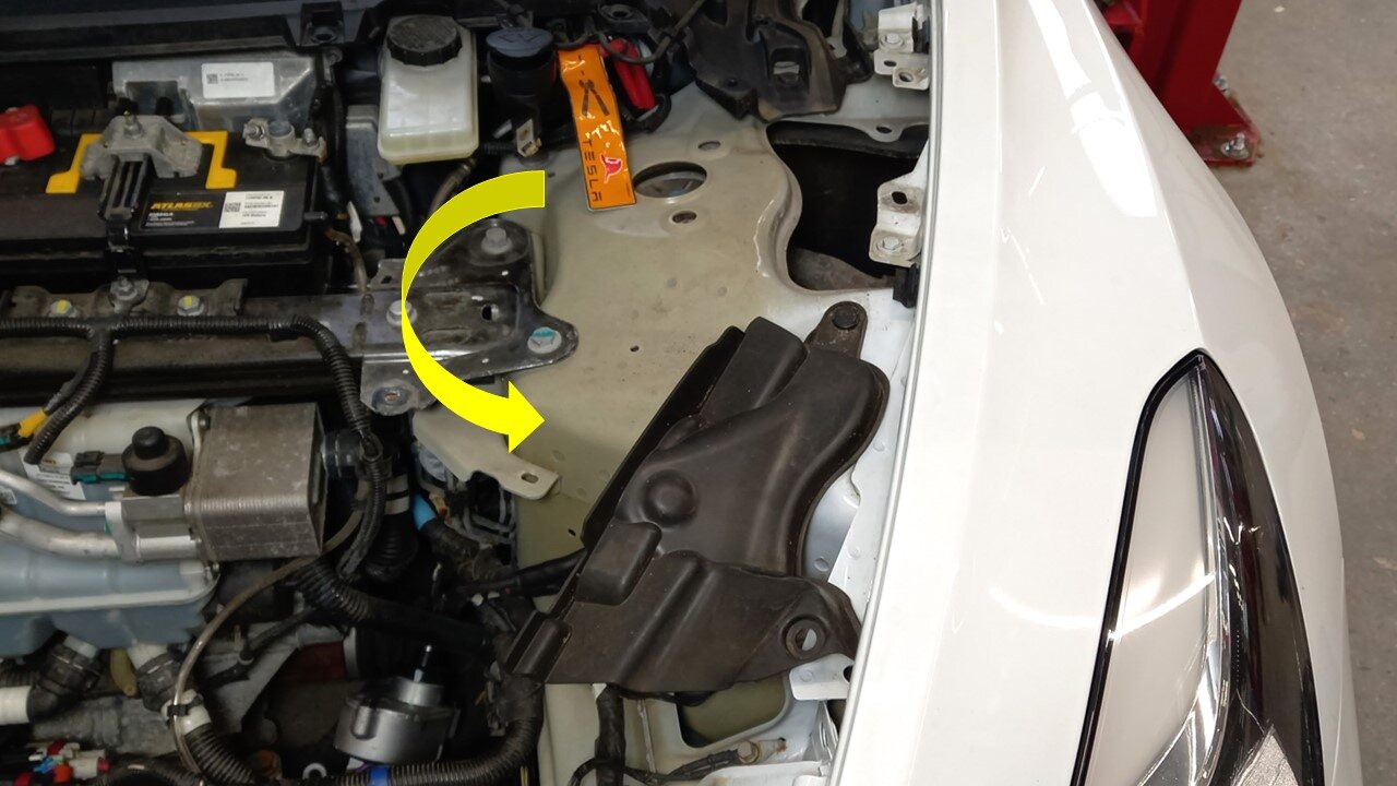 Anmerkung1x push clip, Flip back the shock tower cover then install clip.