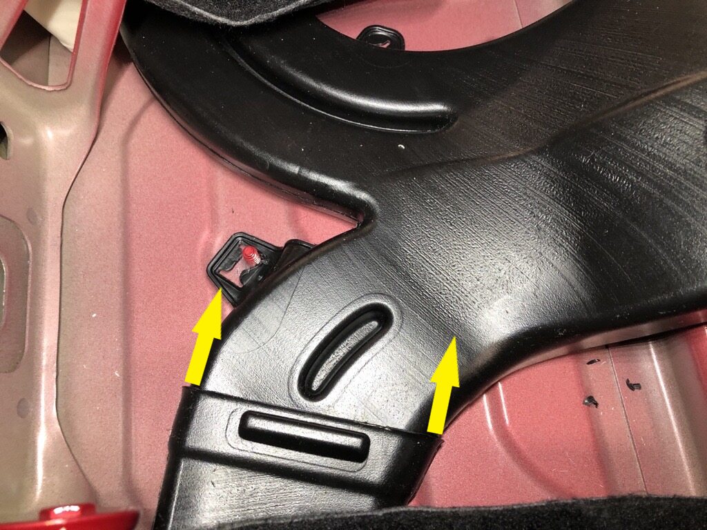 Anmerkung6x clips, 1x bolt, 10mm, 5 Nm, Newer vehicles may be equipped with 2x push clips securing lower portion of liner to body