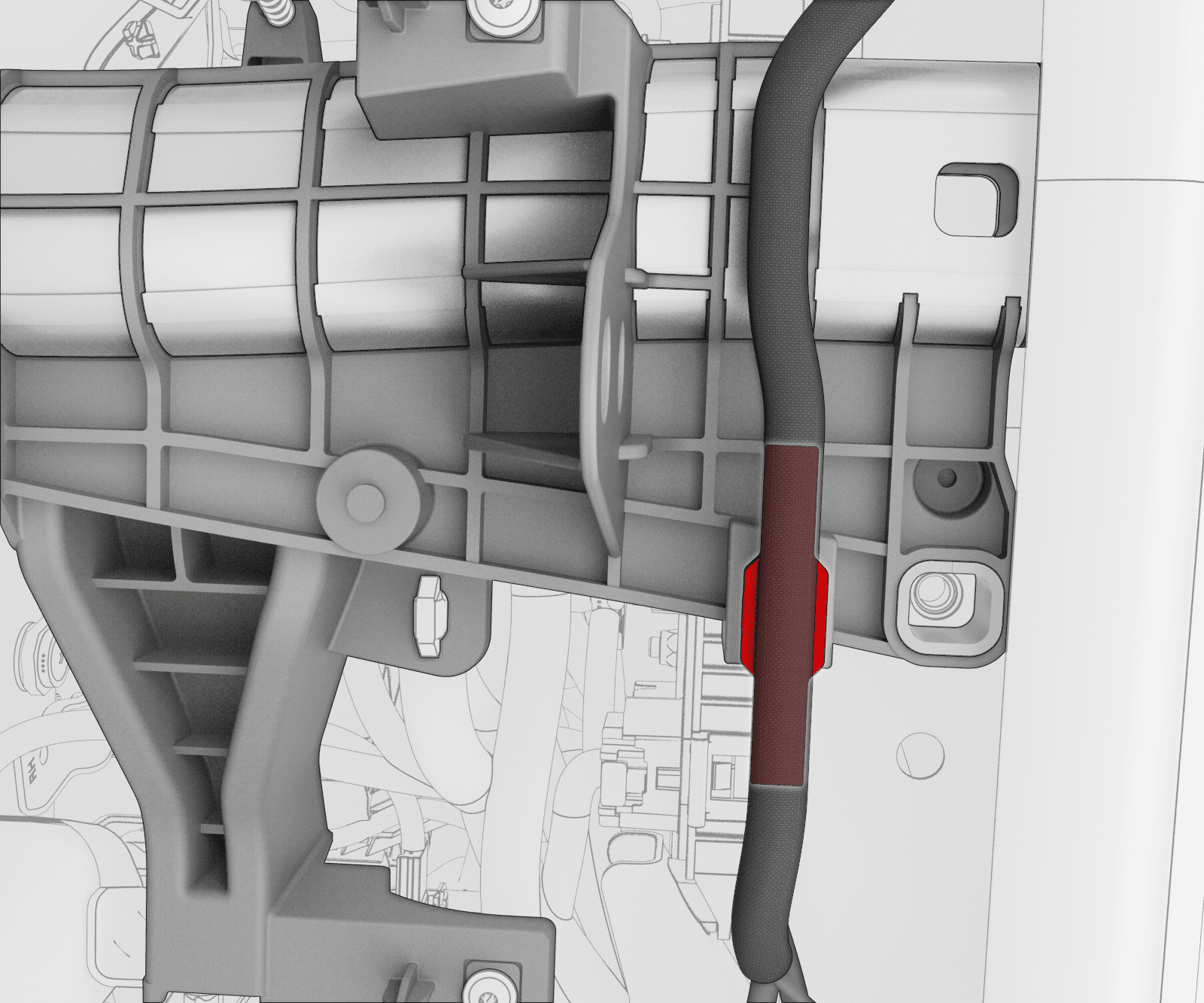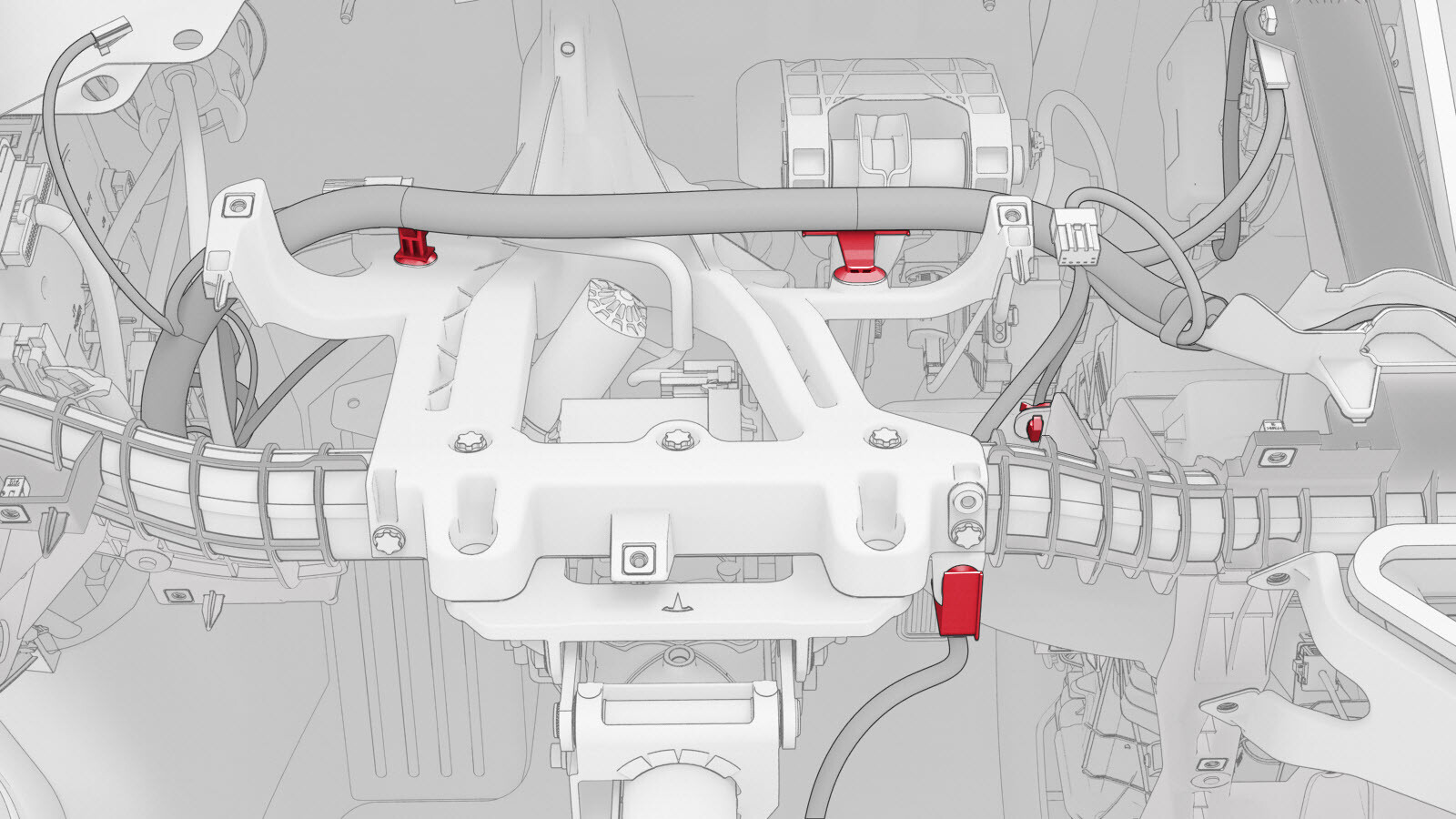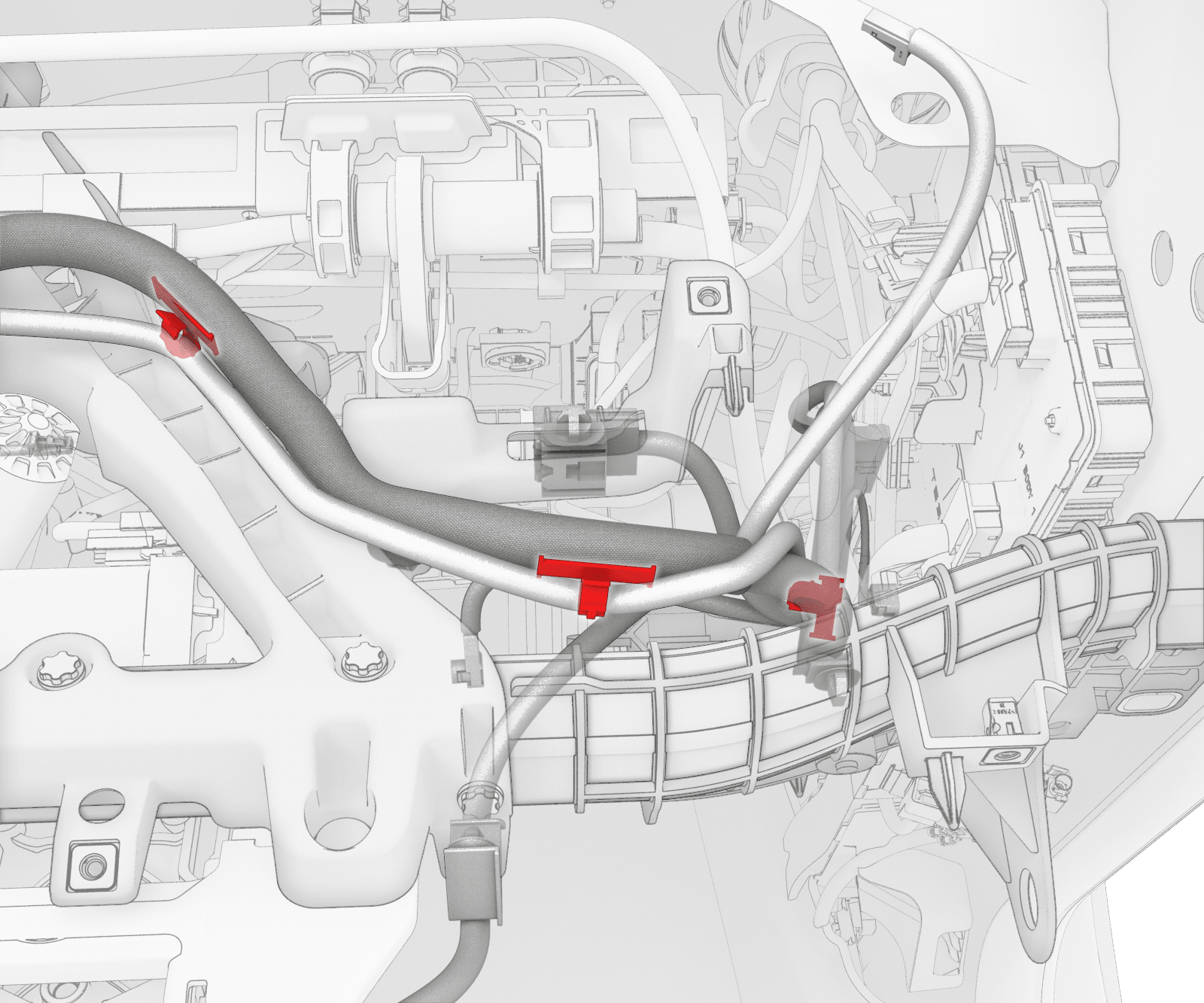 - Remove the instrument panel harness clips (x3) from the top of the cross car beam and release the HVAC harness from the instrument panel harness.