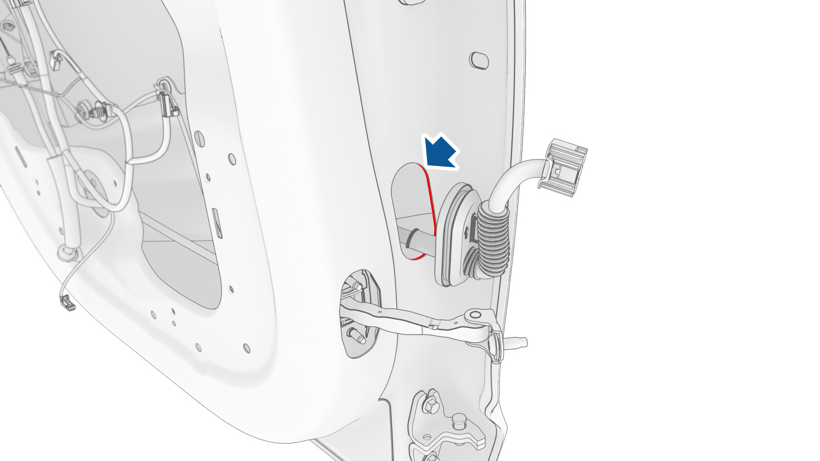 Release the grommet, and then push the LH rear door harness through the inner door harness port.