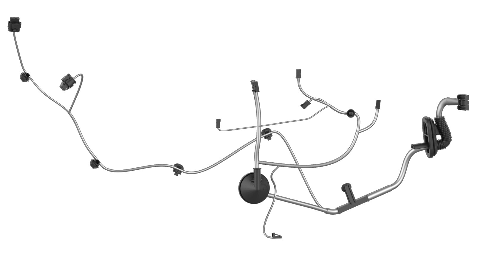 Push the LH rear door harness through the front inner door harness port, and then remove the harness from the vehicle.