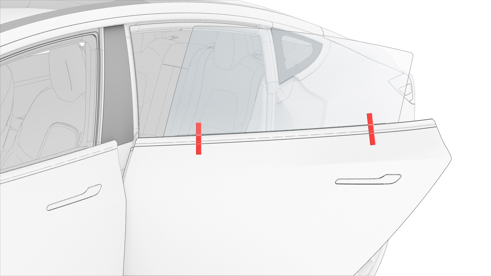 - Remove the LH rear door inner belt seal from the rear door. See Seal - Inner Belt - Rear Door - LH (Remove and Replace).