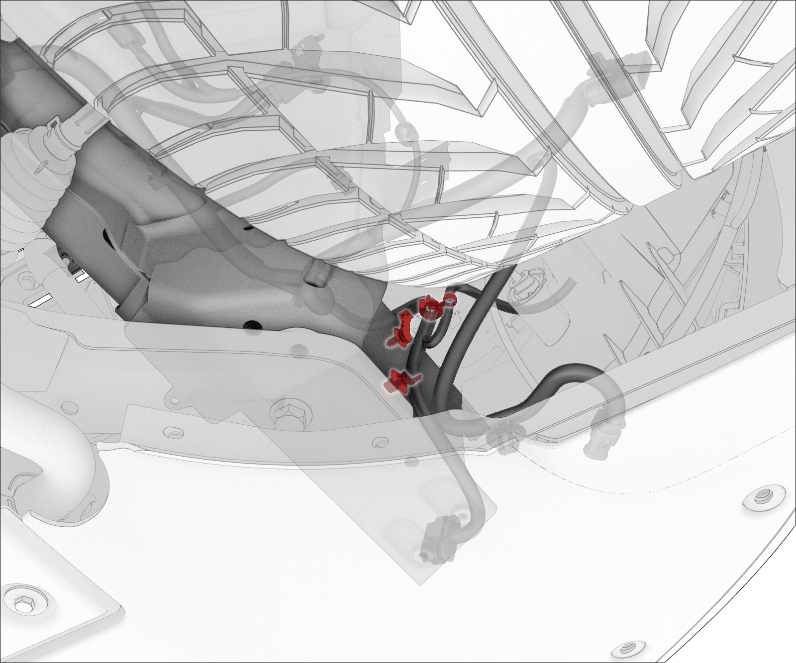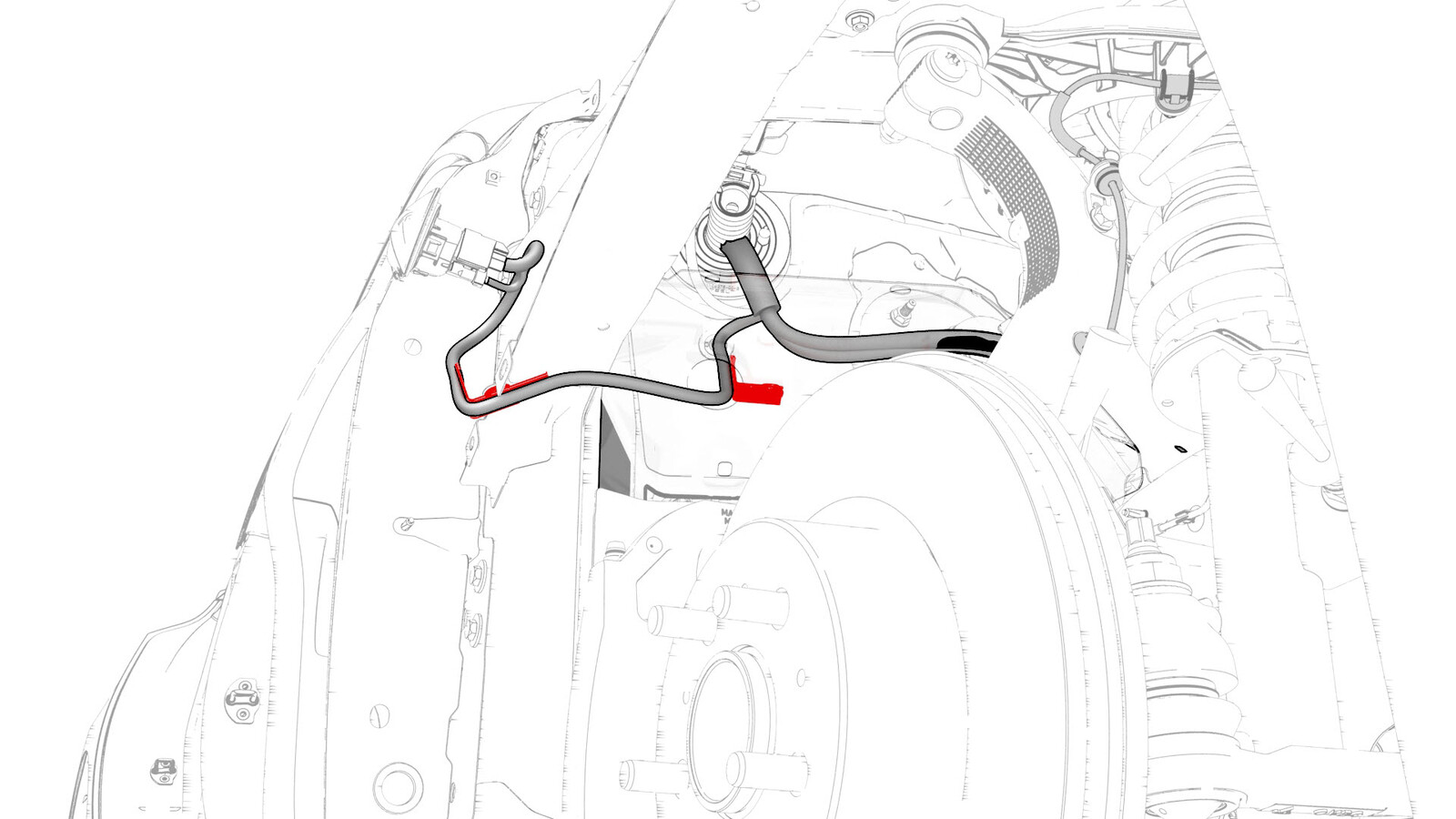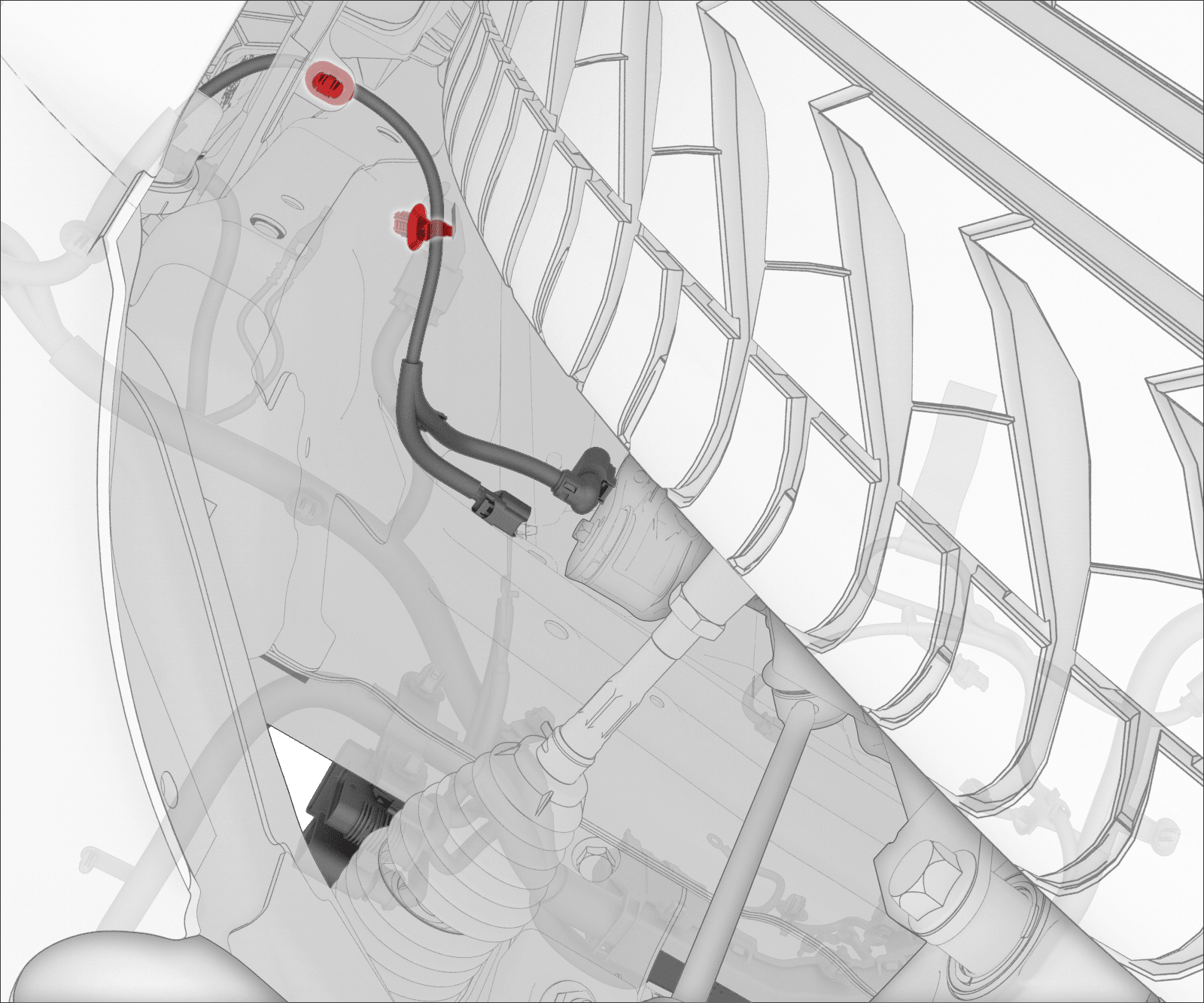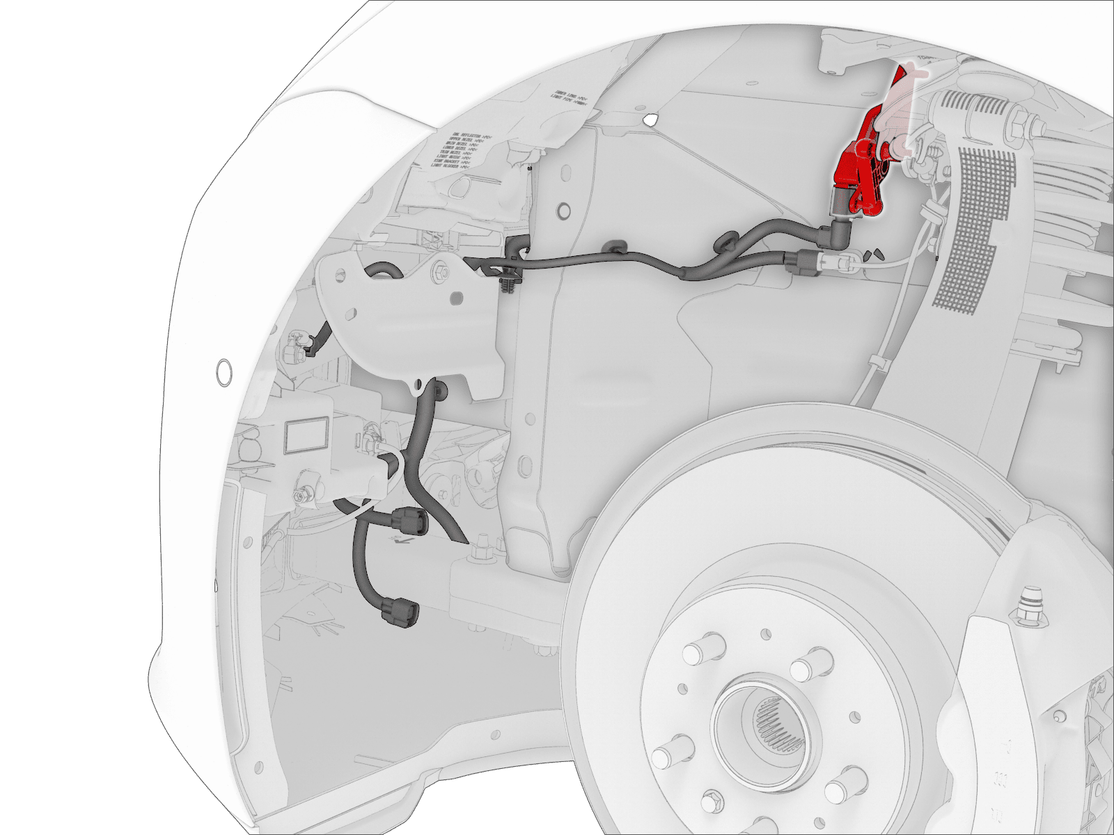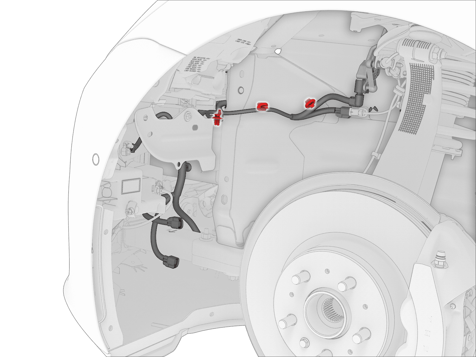 - Install the front wheel speed sensor harness clips (x2) at the front of the RH front wheel arch.