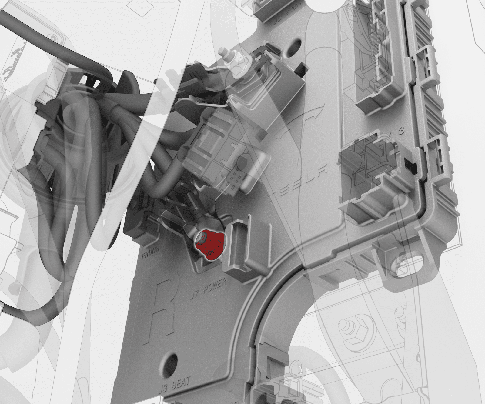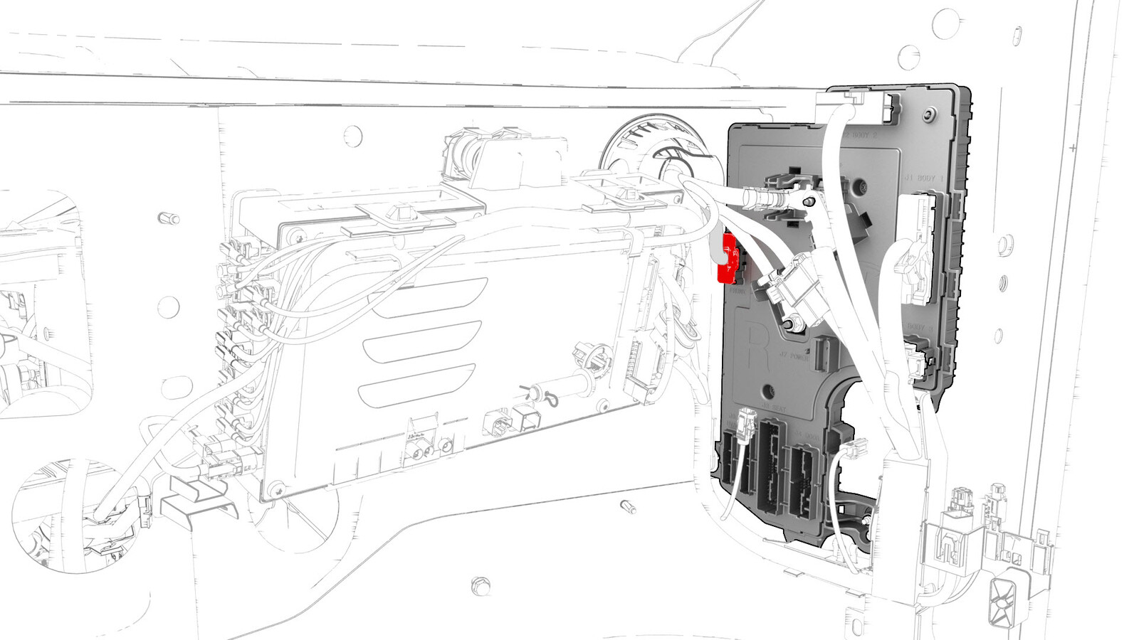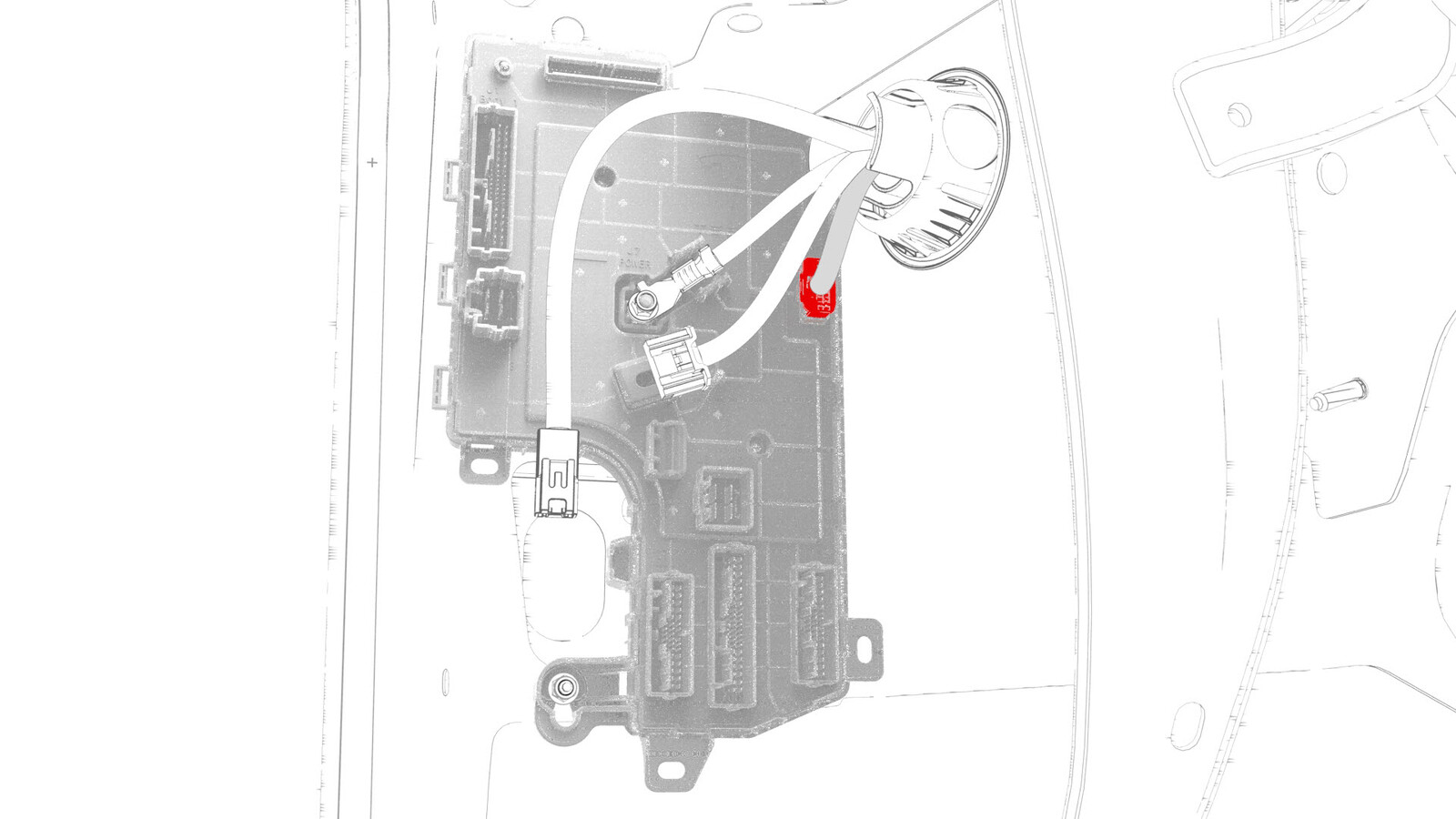 Nm) that attaches the power cable of the electrical harness to the LH body