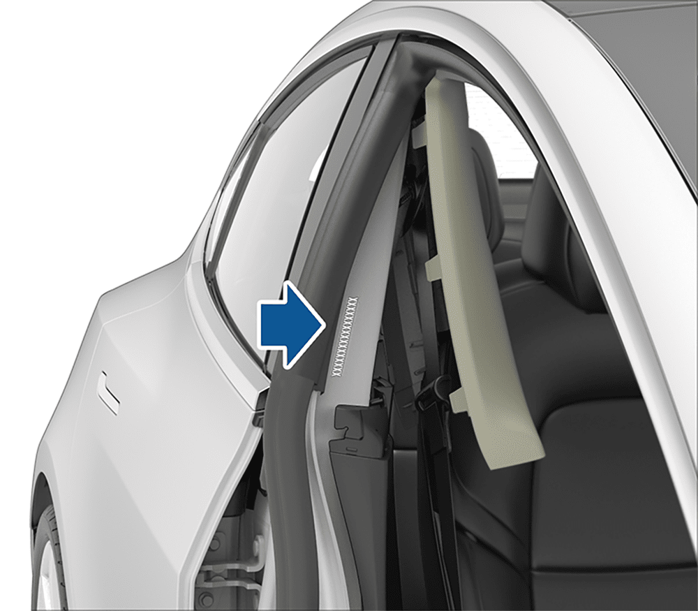 The RH upper B-pillar; can be seen when the upper B-pillar trim is removed (only applicable to Fremont built vehicles in certain regions such as China and Europe)