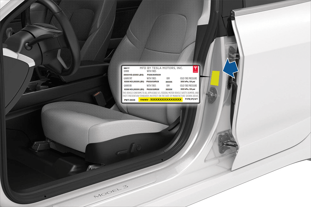 Cars manufactured in Gigafactory Shanghai before September 2020: The VIN is located on a label that is stamped onto the floor and can be seen by moving the front passenger seat forward and lifting the carpet.