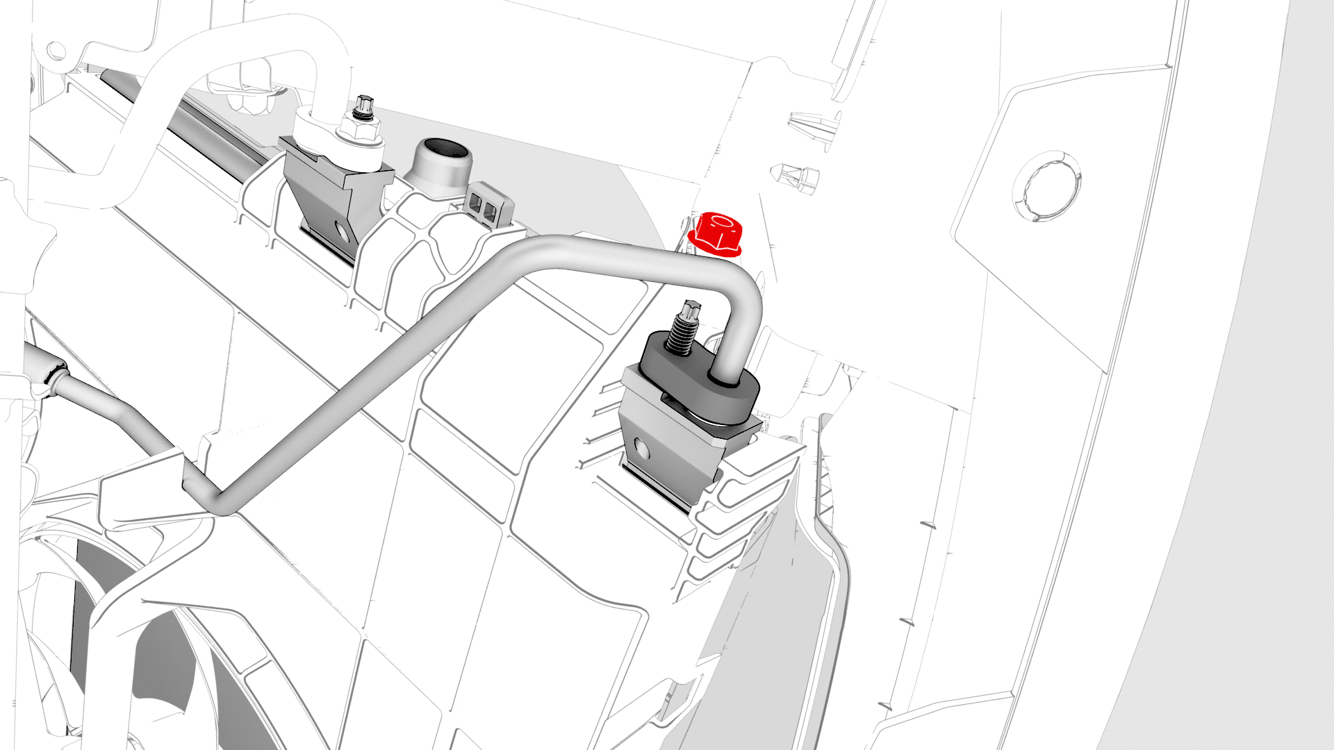 - Repeat step 19 through step 21 for the RH side cooling fan module isolator.