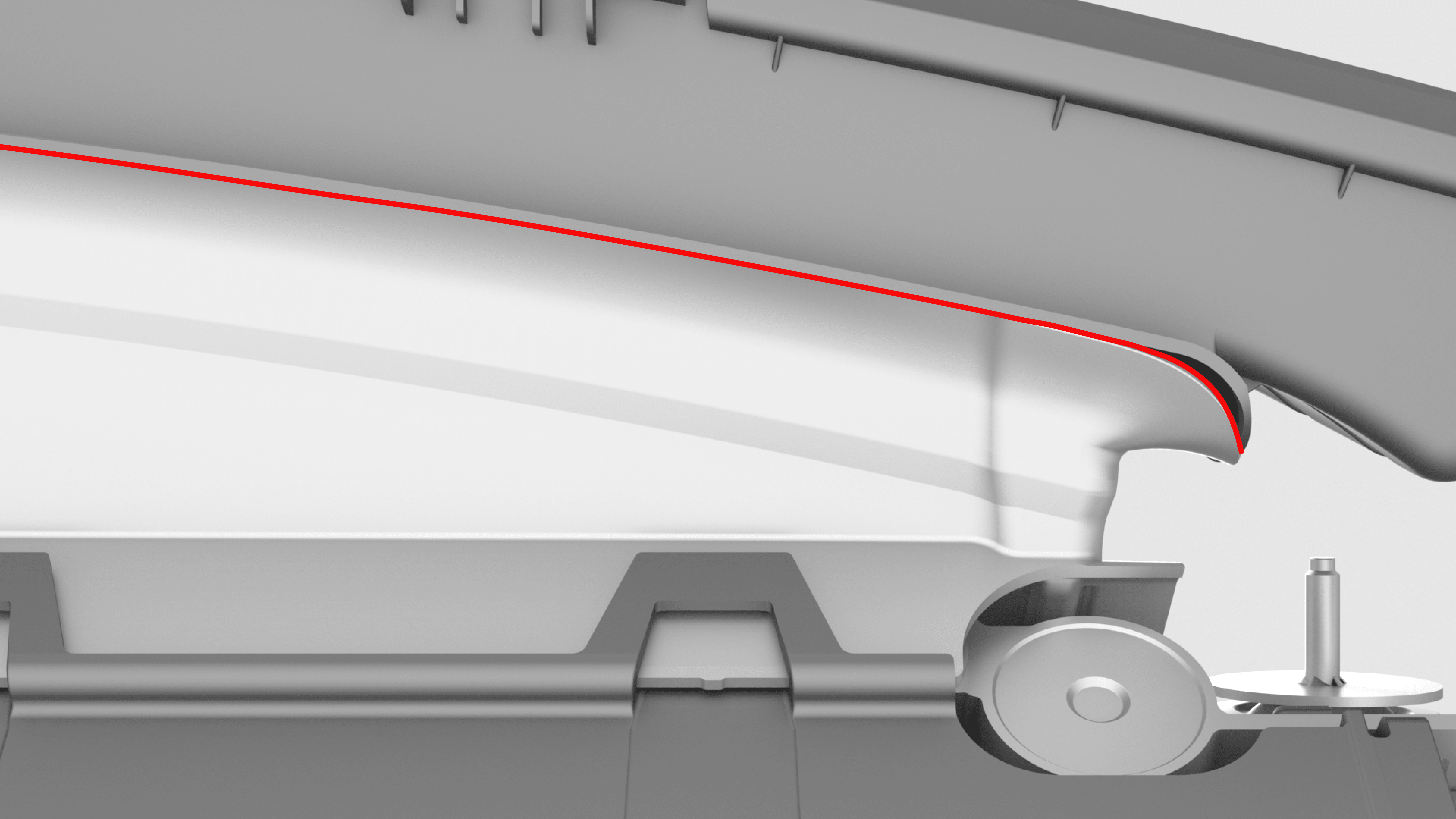 NoteThe cooling fan module tab must be inserted into the isolator so that the trailing tab touches the isolator rubber and the chamfered edge is clearly visible when looking from above.NoteThe trailing edge of the cooling fan module mount must contact the lower tunnel of the isolator.