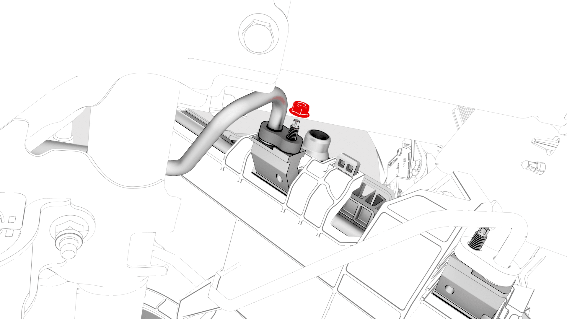 Install the nut that attaches the suction/liquid line to the cooling fan module.22 Nm (16.2 lbs-ft)