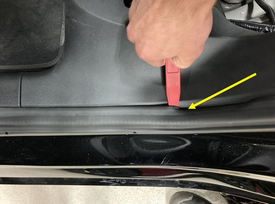 Note3x clips, 1x guide tab, Pull upward at the lower corner of sill trim to release clip from lower B-pillar, Then remove the remaining clips by pulling away from the body