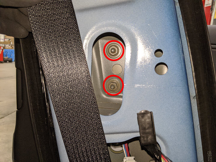 Torque fasteners securing LH rear upper door hinge to the LH rear door