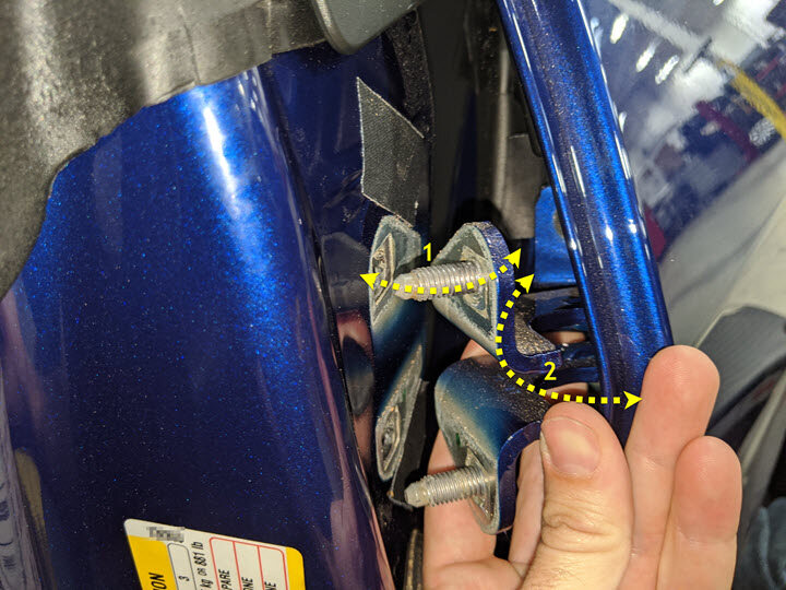 Note2x clips, 3 guide tabs, Align the 2 front tabs then align the slot with harness bracket and then push rear clip to secure to lower B-pillar, fully seat seal along trim