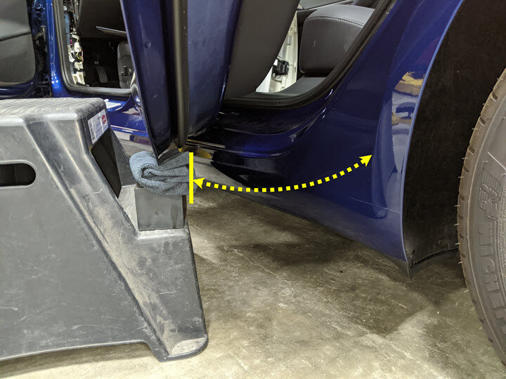 NoteShift upper section of door outward slightly to create space to remove studs from body