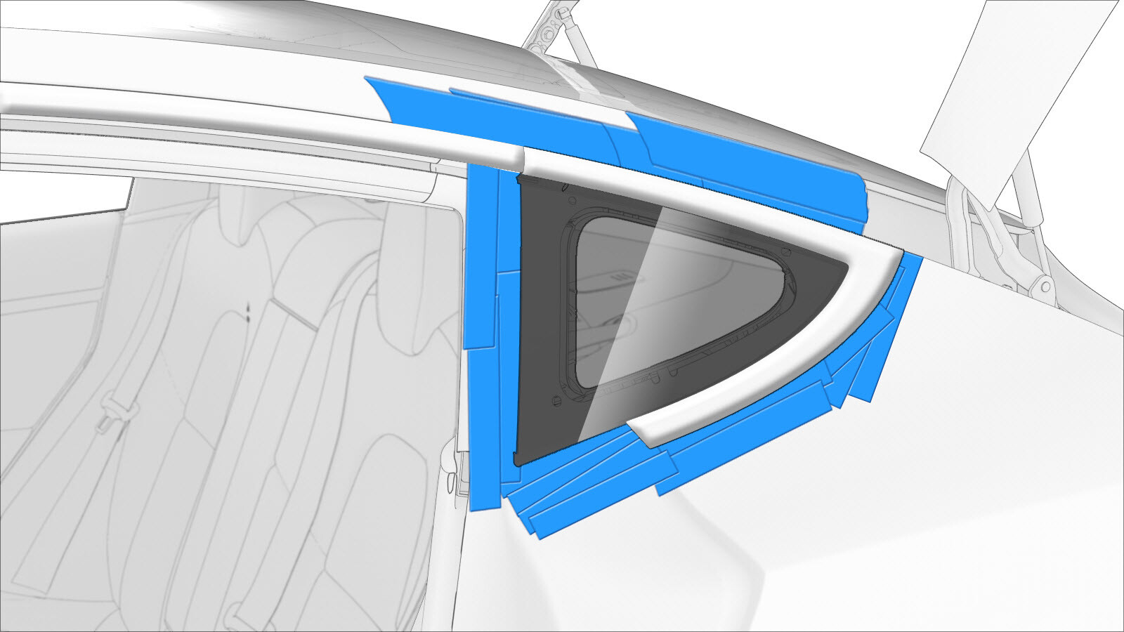 area of the rear quarter body glass.