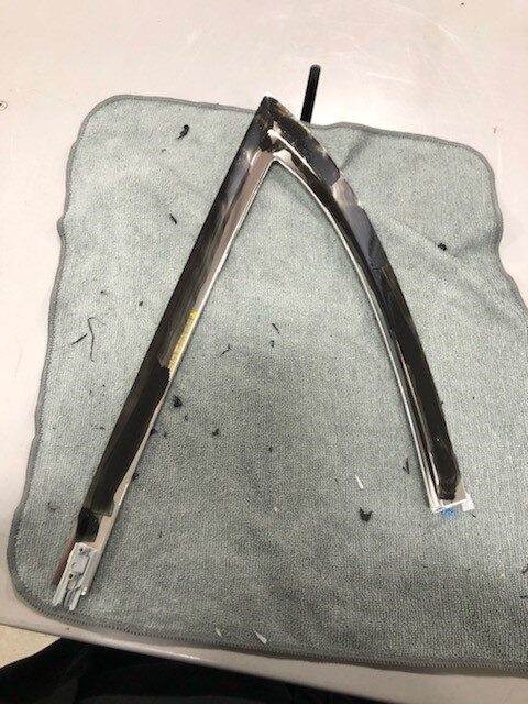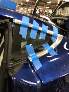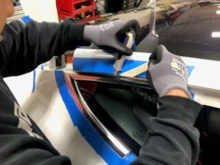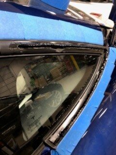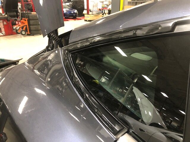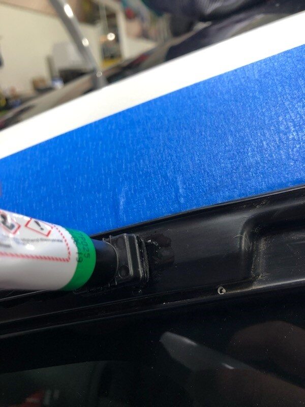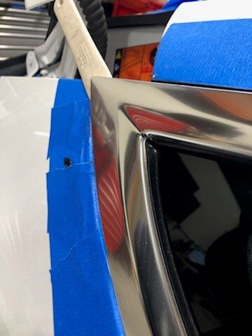 path on the encapsulated glass and LH quarter panel brightwork.