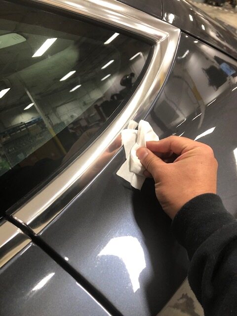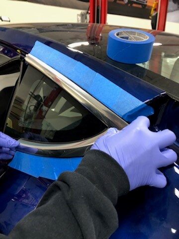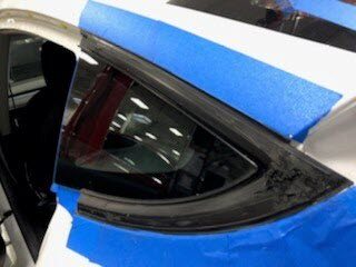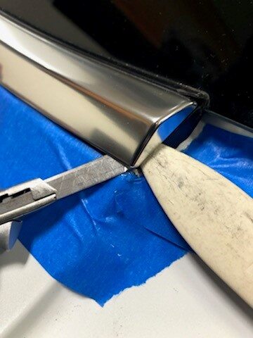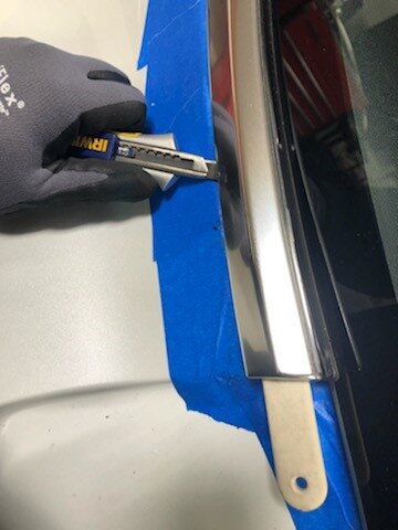 rear edge of the LH quarter brightwork from the LH rear quarter body glass, and then use