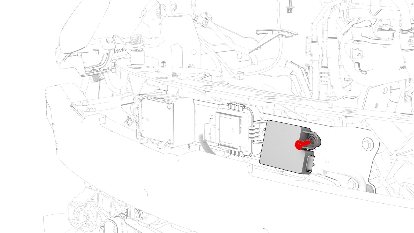 Remove the bolt that attaches the front Bluetooth passive entry antenna to the front end carrier, and then remove the antenna from the front end carrier.9 Nm (6.6 lbs-ft)