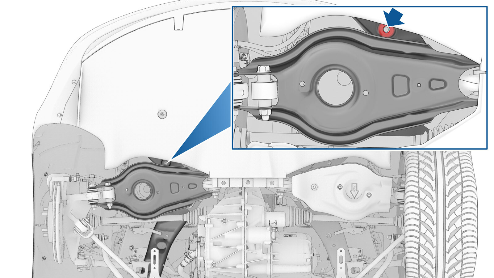 that attach the LH lower rear control arm to the subframe, and then mark the