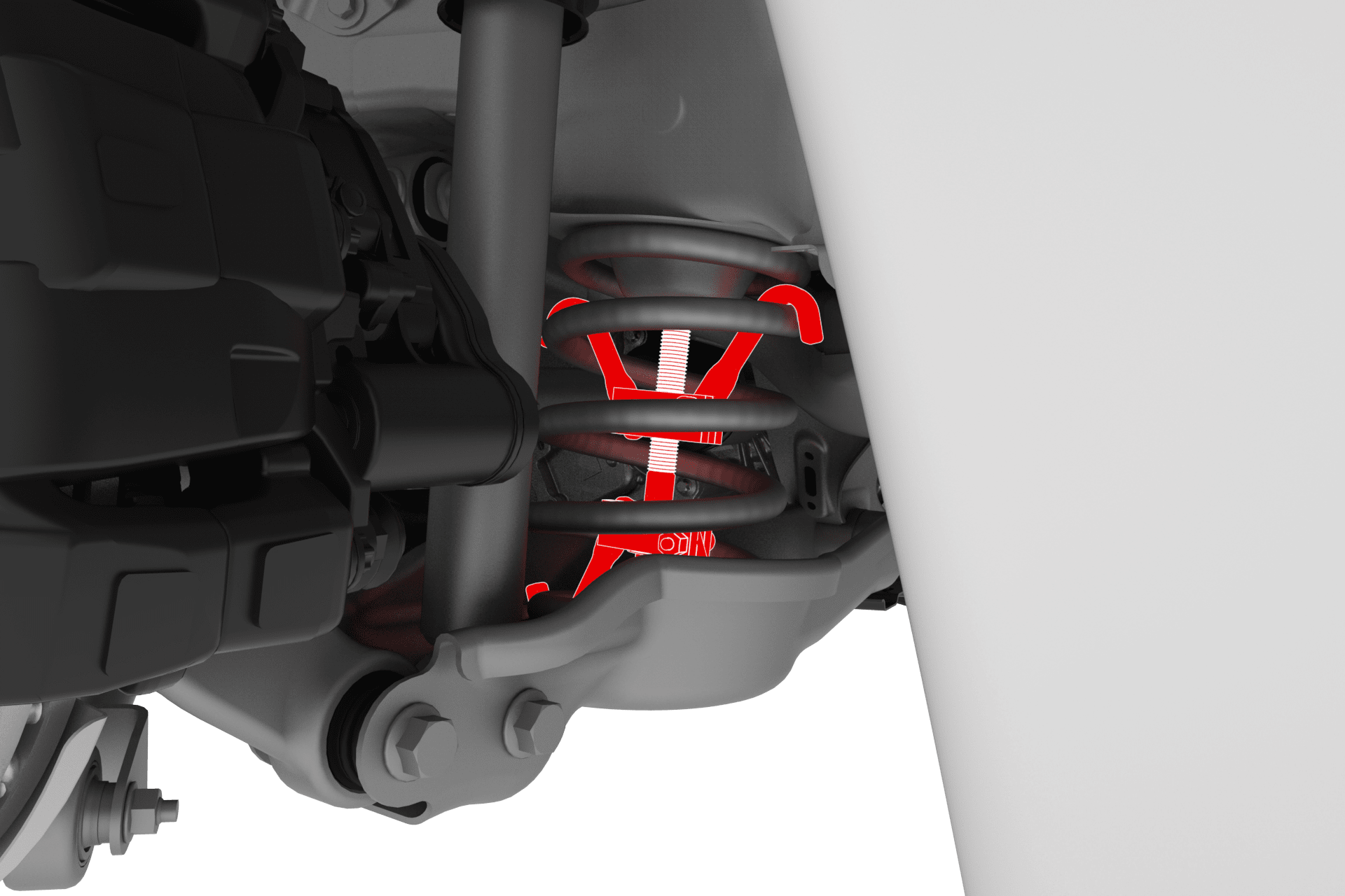 NoteMake sure that the support stand does not block to the adjustment of the spring compressor or the LH rear suspension bolts.