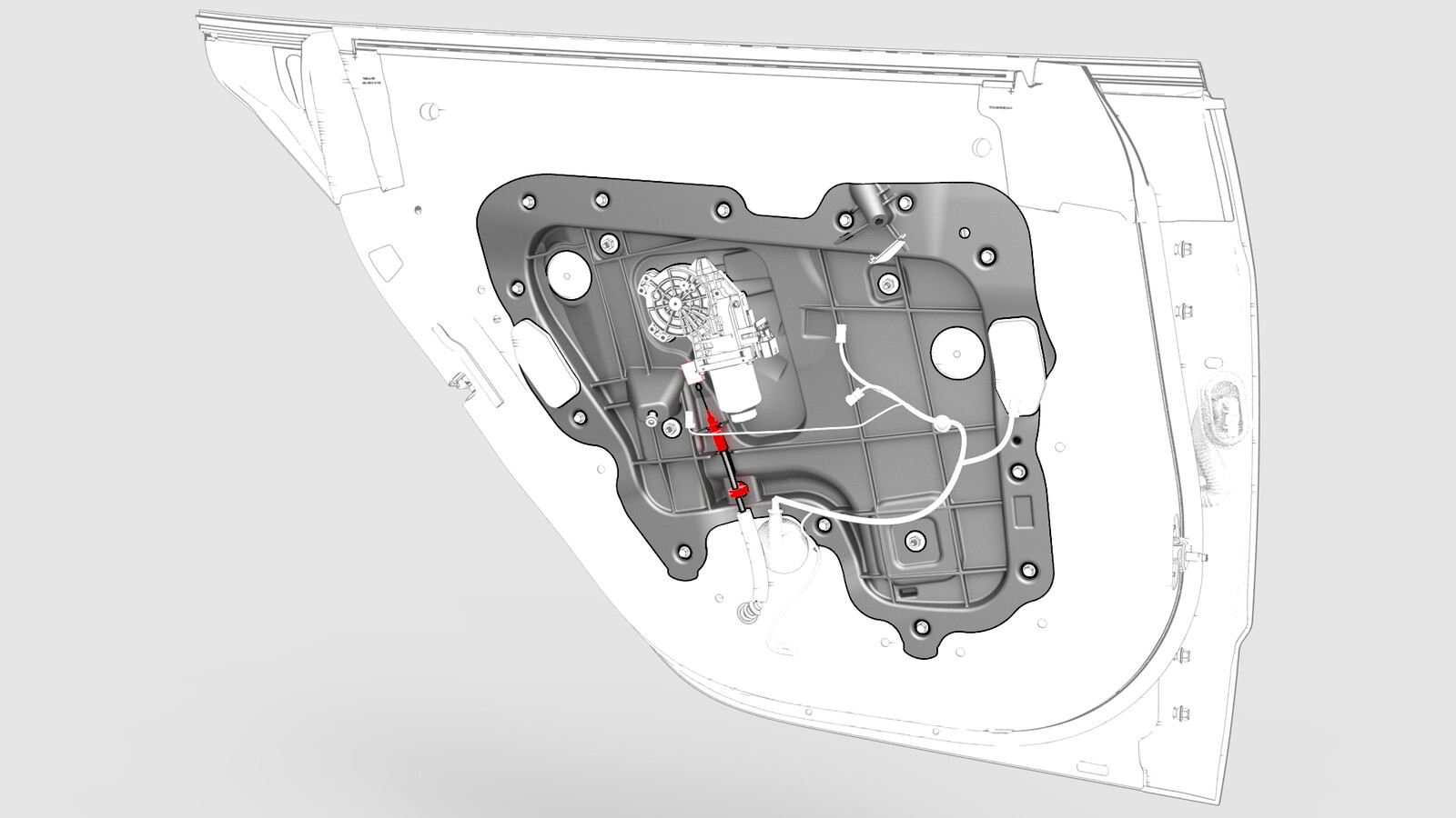 Connect the electrical harness to LH rear window motor/regulator assembly.
